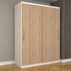 • Dulap Dormitor Nova Eco -15- 150 cm x 200 cm, Fara Oglinda, Alb cu Usi Glisante Sonoma